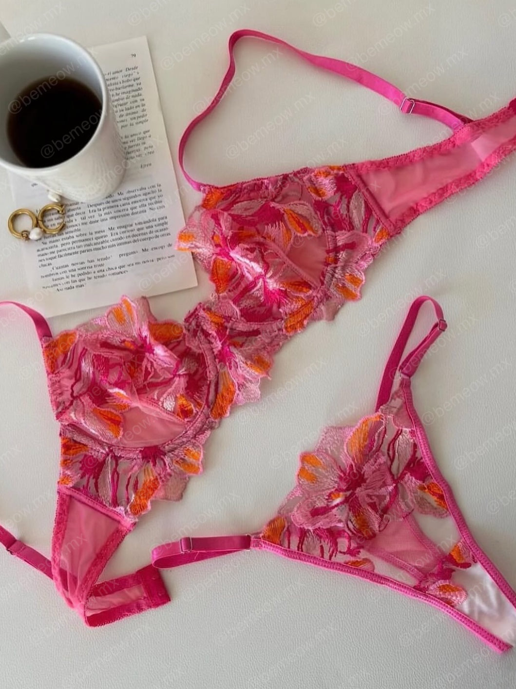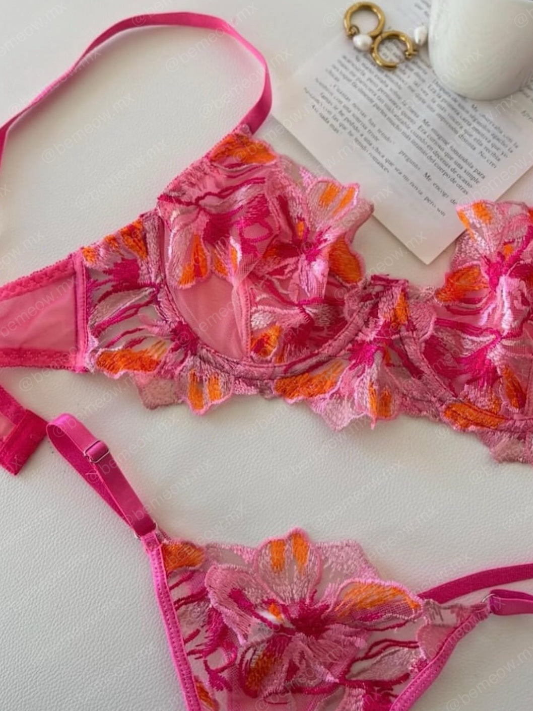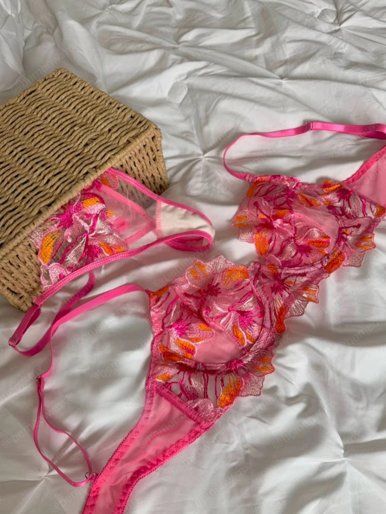 Conjunto de Lencería Fiusha de Tul y Mesh, 2 piezas: Bra, panty