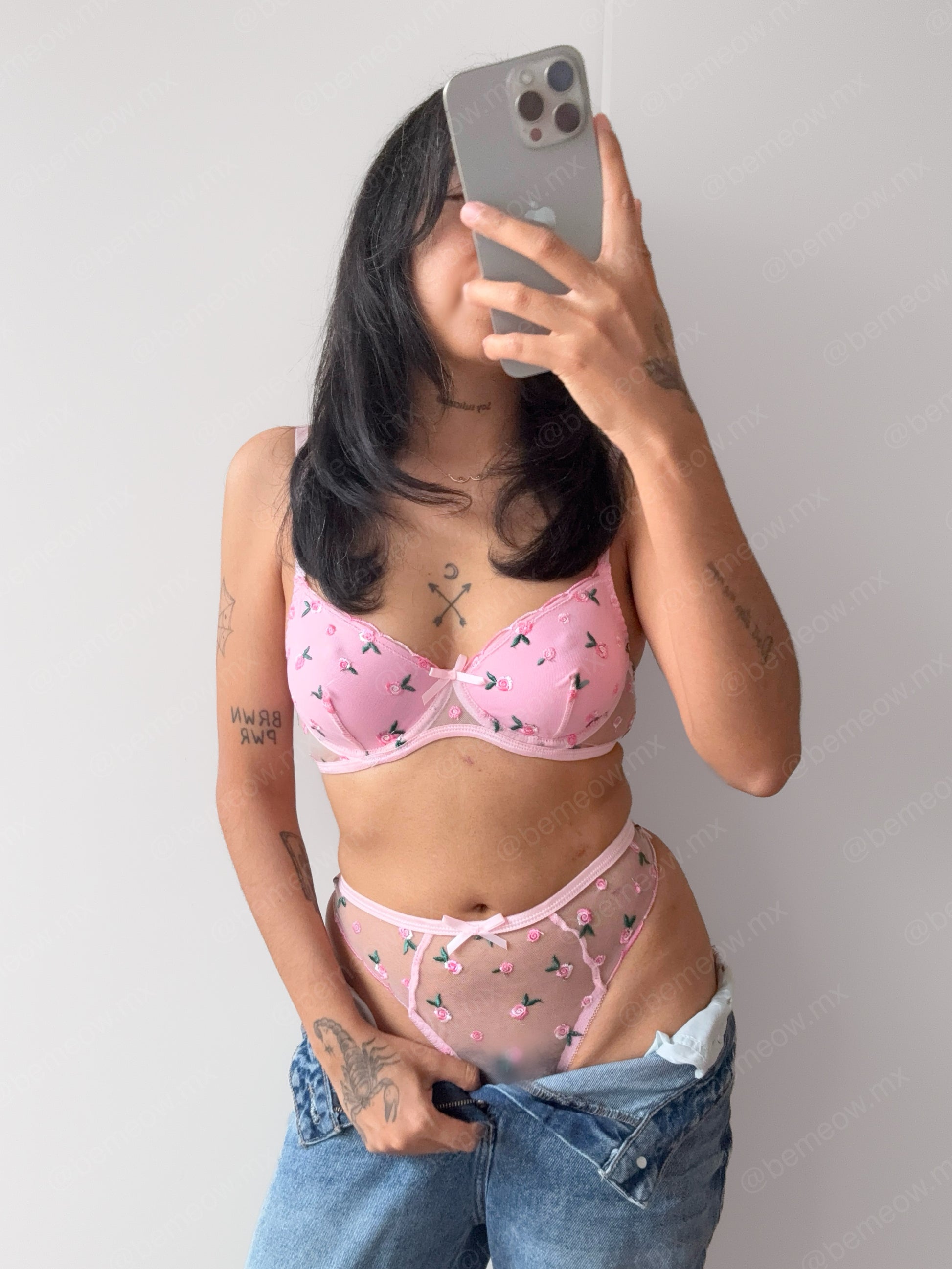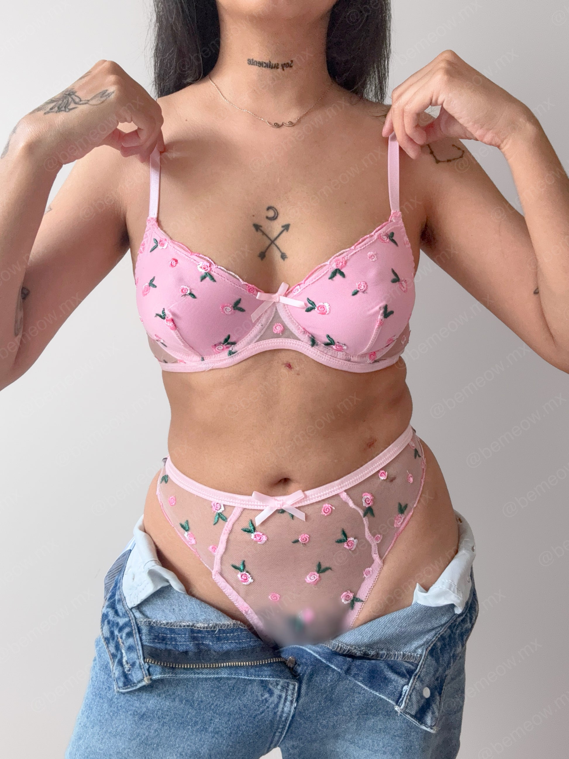 Conjunto de Lencería rosa de Tul y Mesh, 2 piezas: Bra, panty