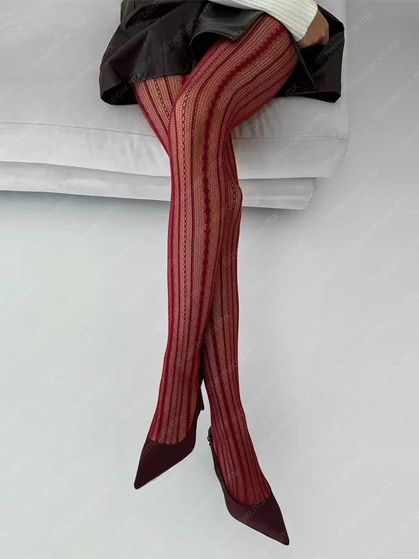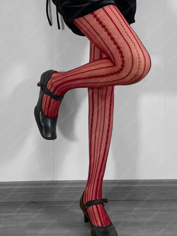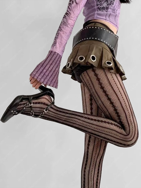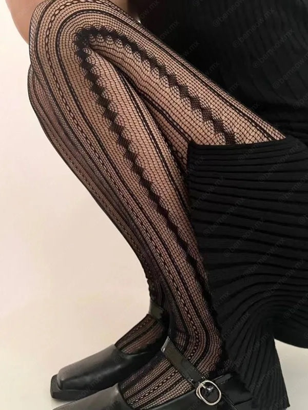Panti-Medias de rejilla patrón de líneas abstractas (Son completas, llegan hasta la cintura)