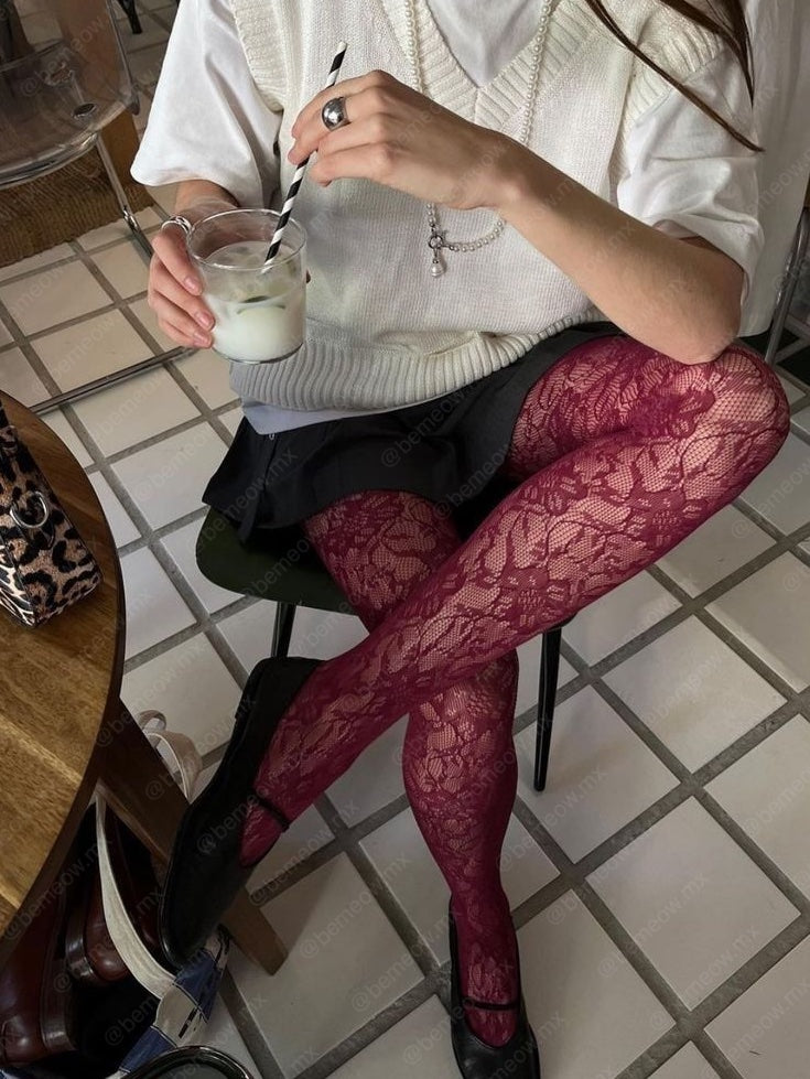 Panti-Medias de rejilla patrón floral (Son completas, llegan hasta la cintura)